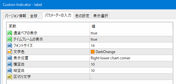 通貨ペアとタイムフレームをチャート上に表示するMT4用インジケーター