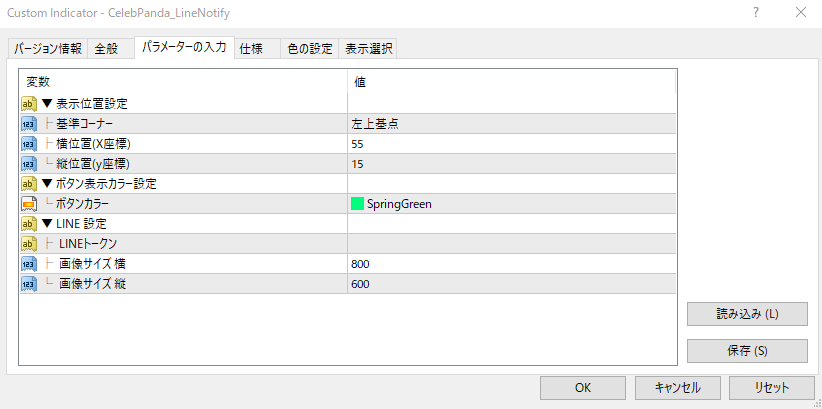 ※本インジケータを使用される前に、LINEnotifyでトークン番号の取得が必要になります。