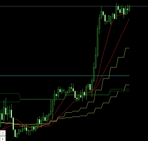 ・一つのインジケーターで最大16本までのマルチタイムフレーム対応移動平均線を表示できます。