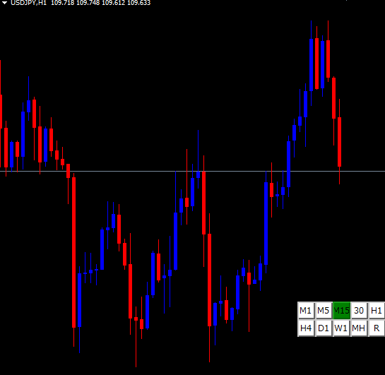 ご依頼をいただいたMT4用のインジケータです。 VT_Chartのリアルタイム版でボタンで選択した時間足毎にコマ送りされていきます。