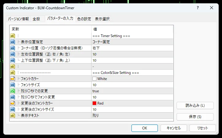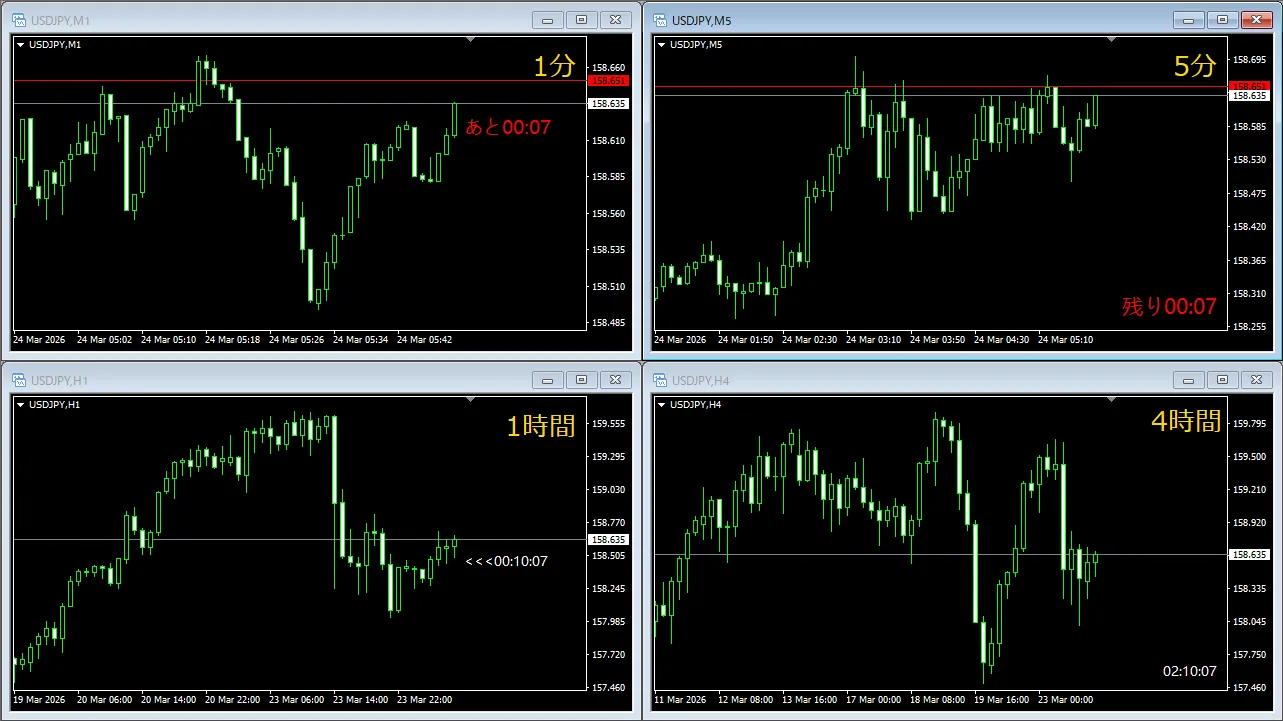 こちらはMT4用のカウントダウンタイマーです。