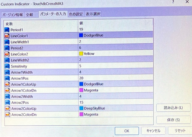 Arrow Color1      矢印の色(Up上向き、Dn下向き