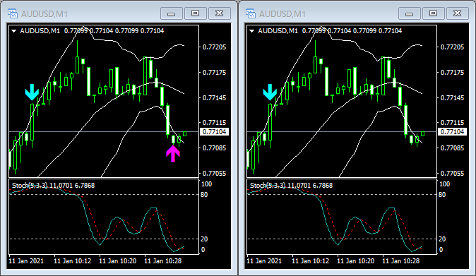 ボリンジャーバンドとストキャスティクスを使ったサインツール。クロスフィルター機能も付けました。