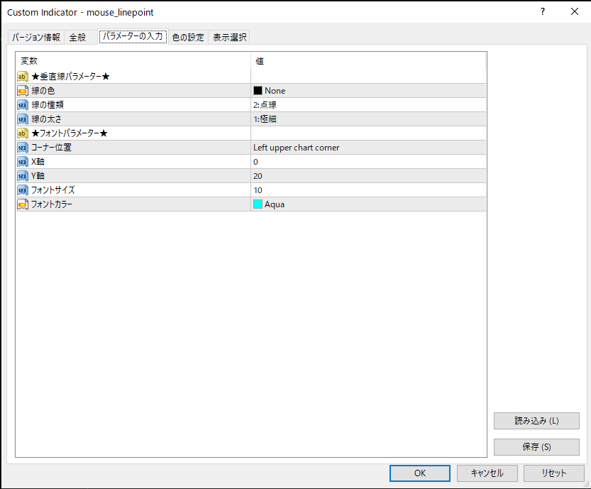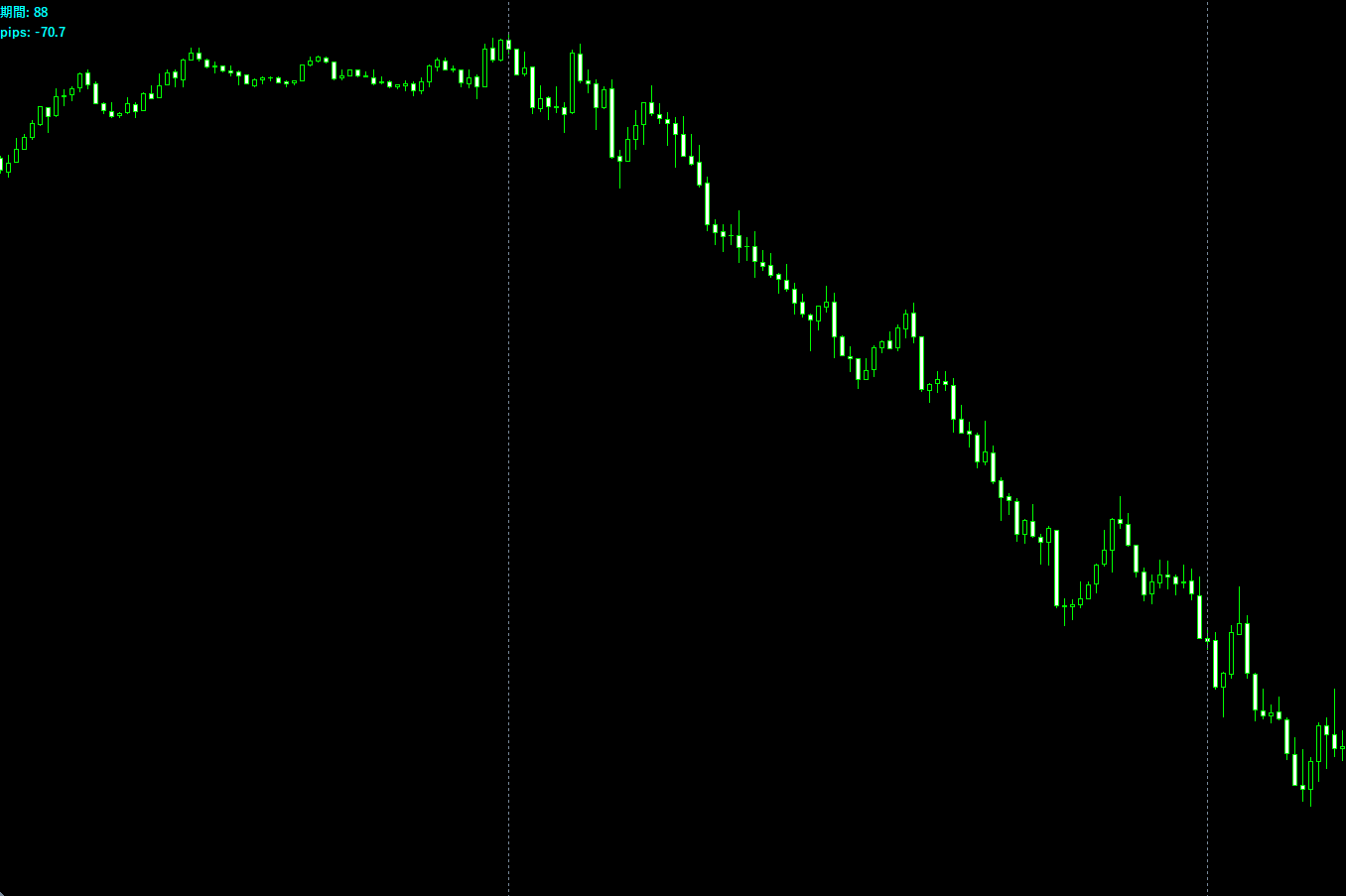 本インジケーターは、キーボードの「Q」と「W」を使用することで垂直線を引くことができます。