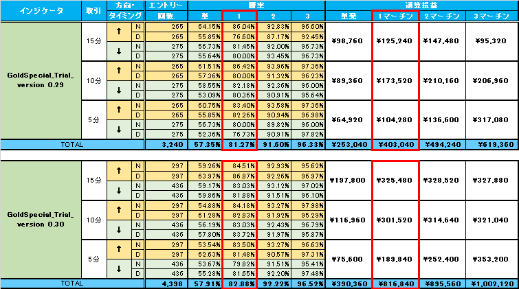新旧バージョンのバックテスト比較は以下のとおりです!
