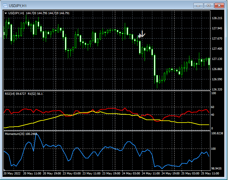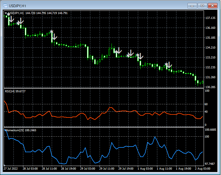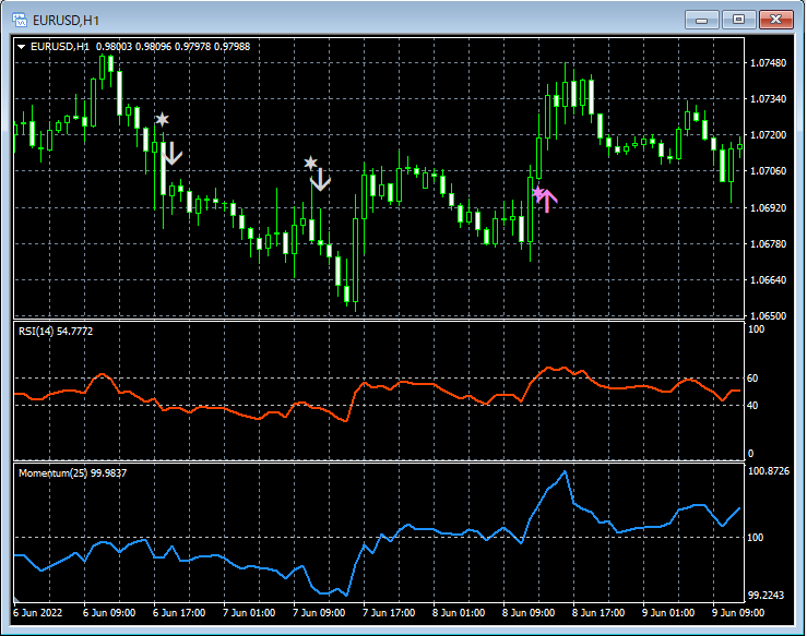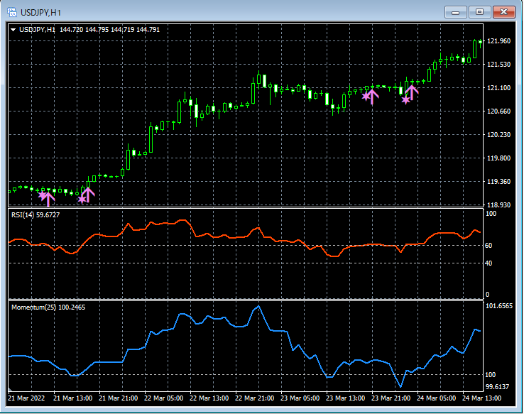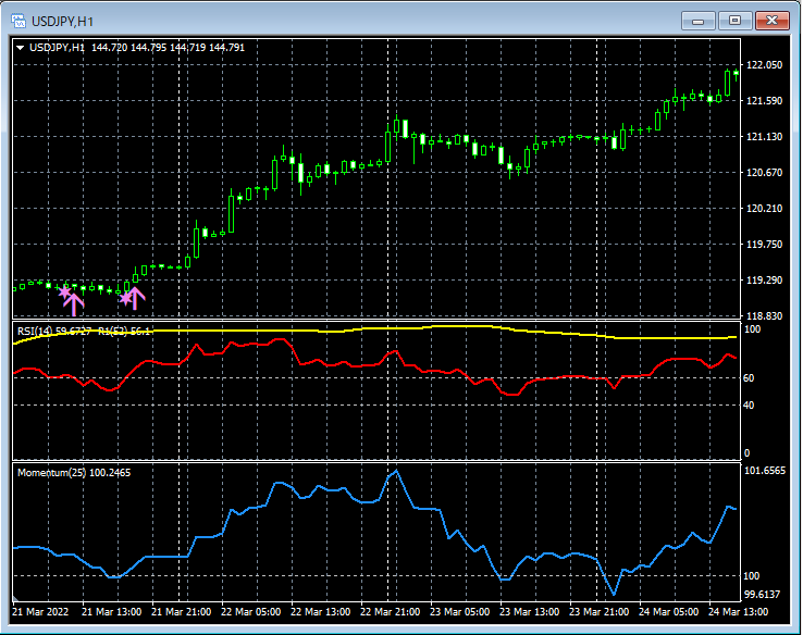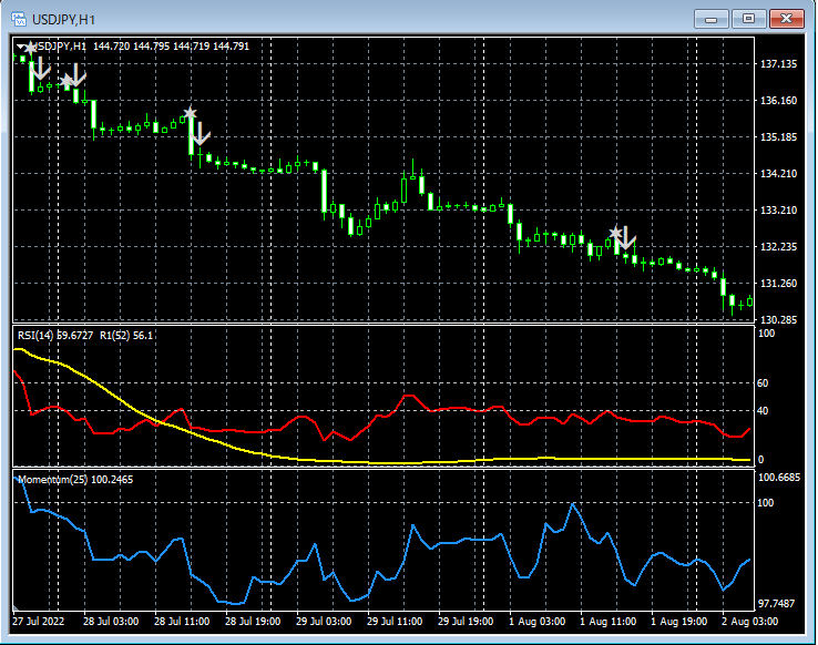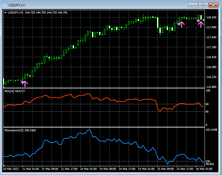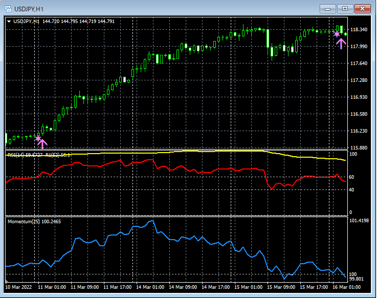 (なお、RSIとモメンタムはMT4に標準搭載されております。)