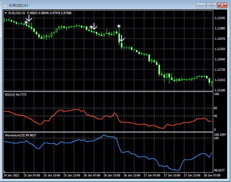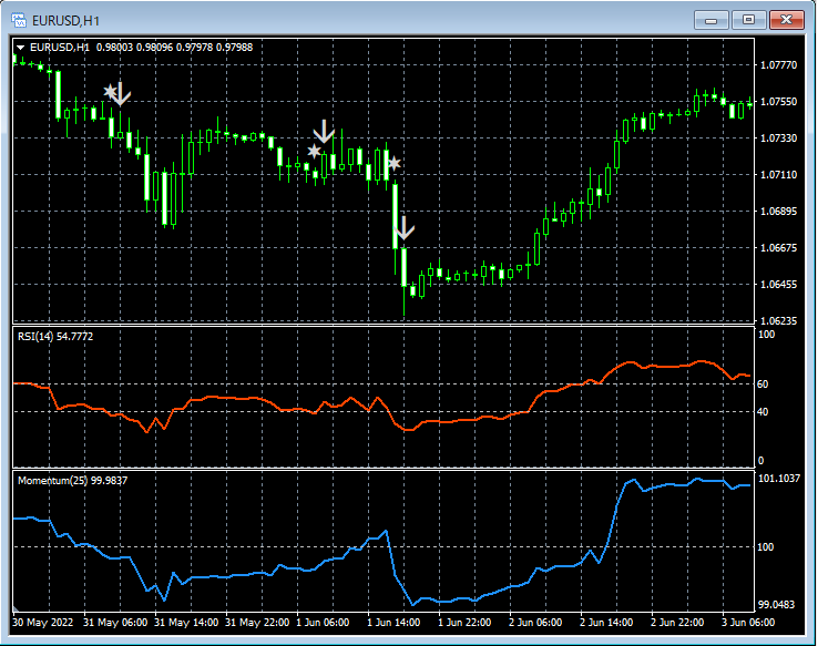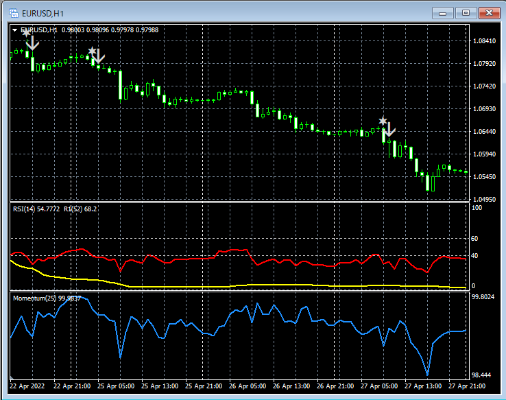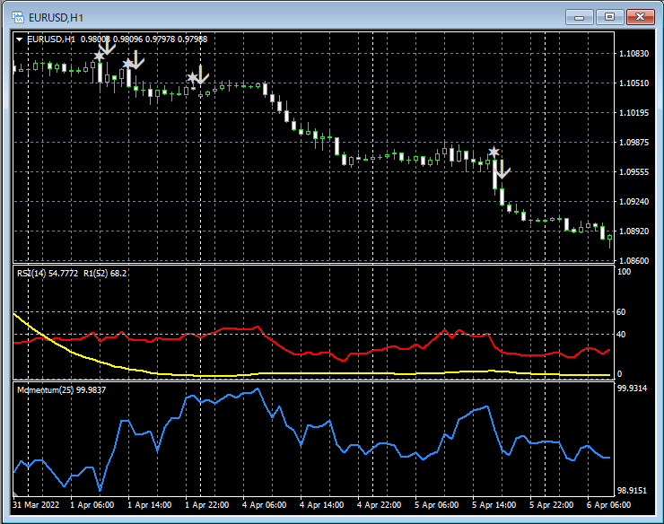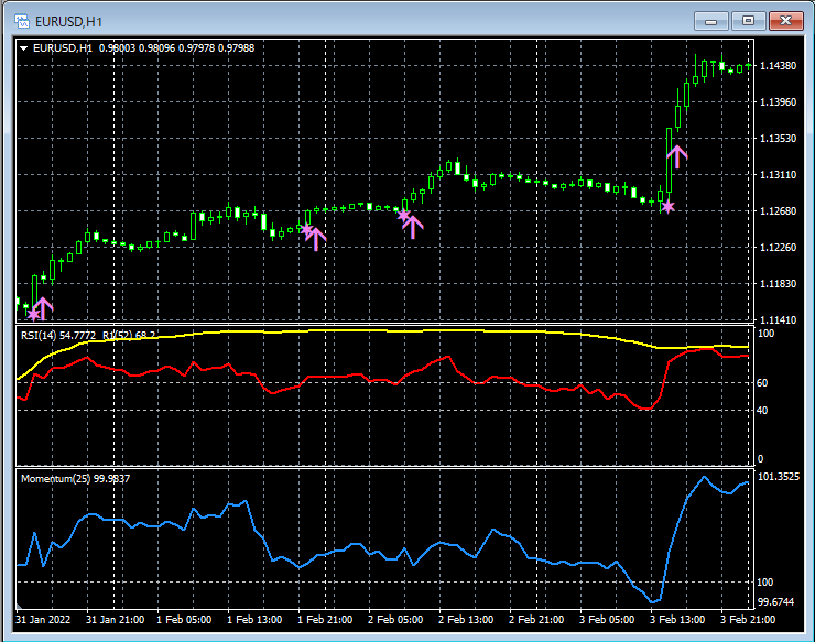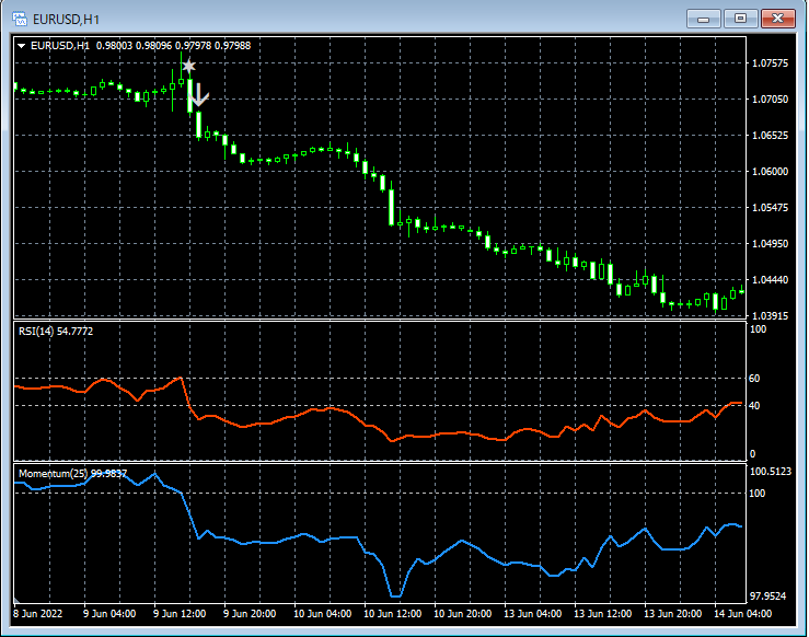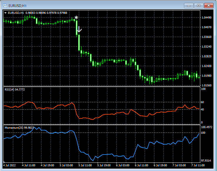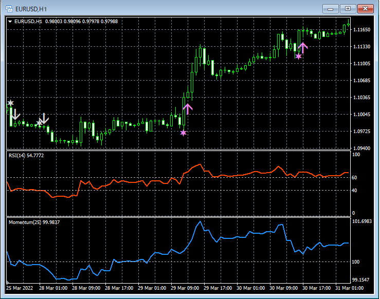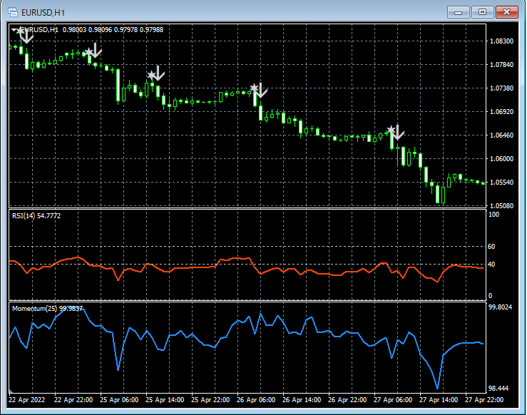 (なお、RSIとモメンタムはMT4に標準搭載されております。)
