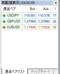 切り替え対象の通貨ペアは気配値表示に表示されている通貨ペアになります。