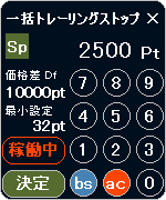 一括トレーリングストップ機能追加・・・ポジション一括でのトレイリングストップ。スタートポイント指定にて、薄利での利確を防止します。