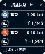 ■金額、または ポイント数を指定することで、ポジションの決済が可能。