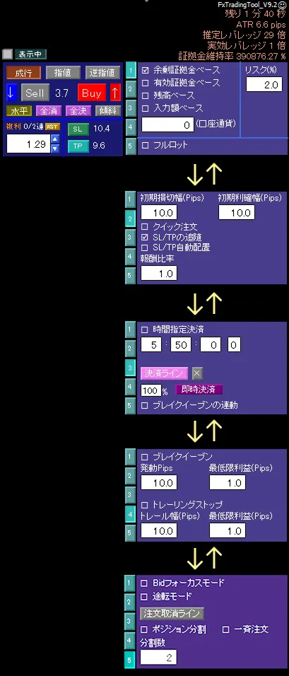 複利計算して自動でロット設定や分割発注/決済などなど、あなたの裁量トレードを快適にいたします!