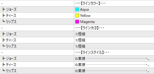 3本のラインを「色」「太さ」「種類」をそれぞれ個別に設定することができます。