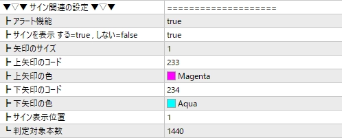 サイン&アラート関連の設定も可能です。