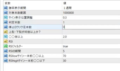 この時点でもかなり高勝率は見込めるのですが、更に検証したい方に向けて、パラメーターもご自身でいじれるようにしています。
