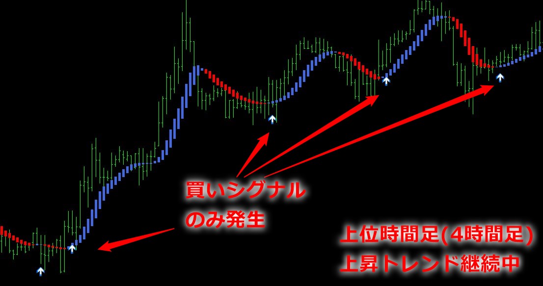 このインジケーターでは、上位足のトレンド方向にだけに絞って