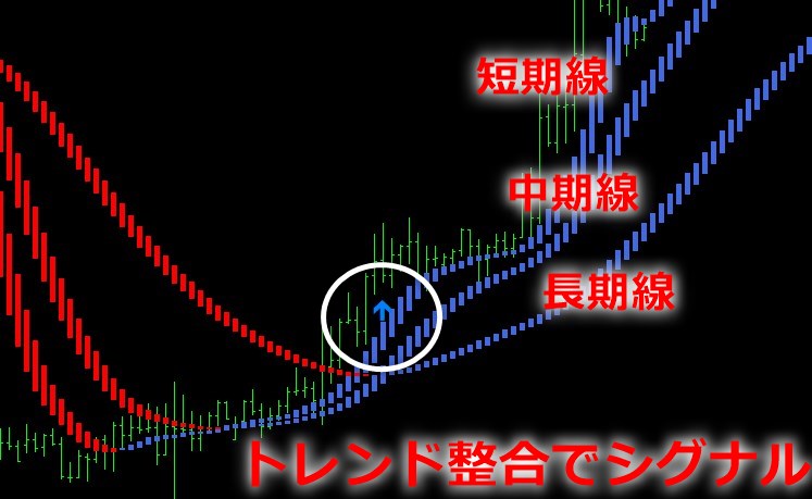 ・長期線に短期線のトレンド方向が揃ったタイミング