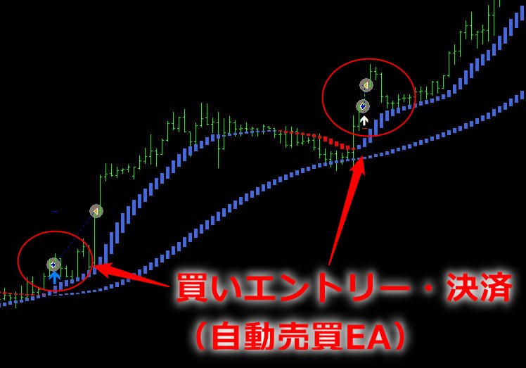平均足スムーズドのシグナルが確定したら、自動売買するEAを付属します。