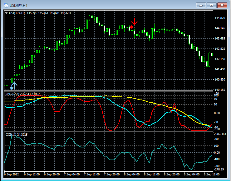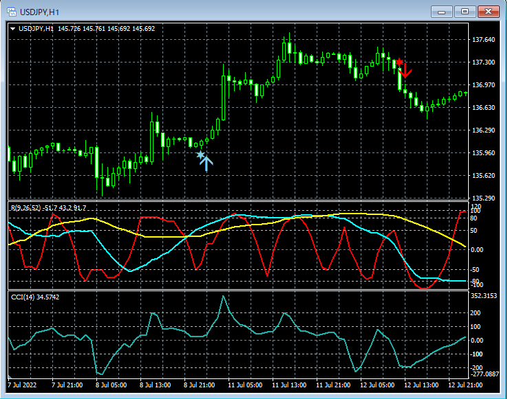 さらに【R3CCIzero_Filter】のチャートの例(ドル円1時間足)を準備しました。本ページの下の方に「◆R3CCIzero_Filterのサインの例 2022年10月11日追加」という新たな項目を設けて25枚のチャートを掲載しました。