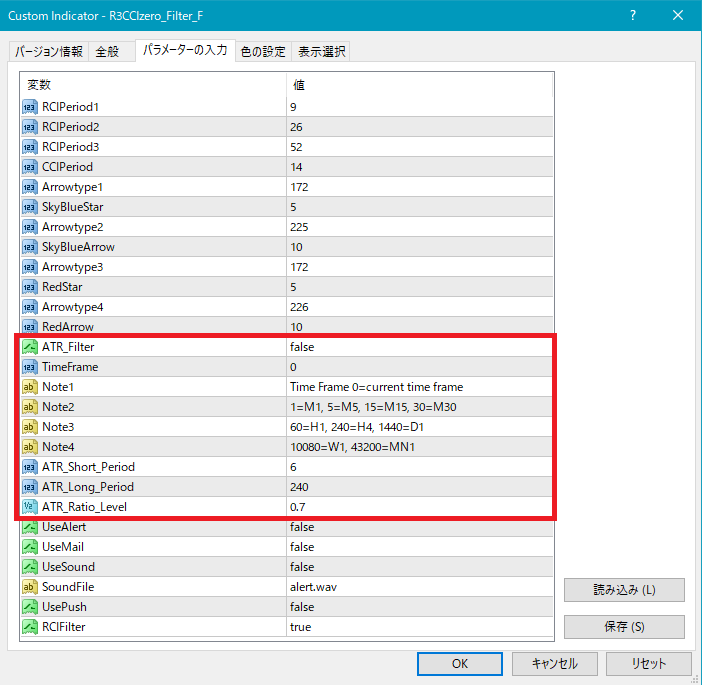 従来のインジケーター R3CCIzero_XXXXXXXXX.ex4 とあわせて新インジケーター R3CCIzero_Filter_XXXXXXXXX.ex4 をダウンロードすることができます。