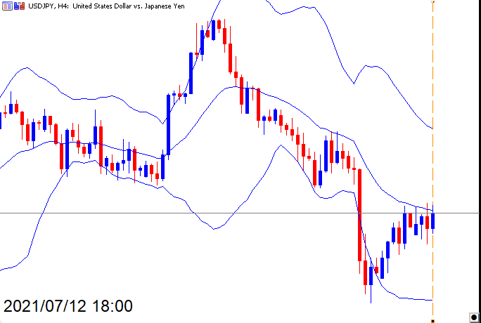 表示が確定足ベースで、下位足を動かしたときは1本前までのボリンジャーバンドを表示します。