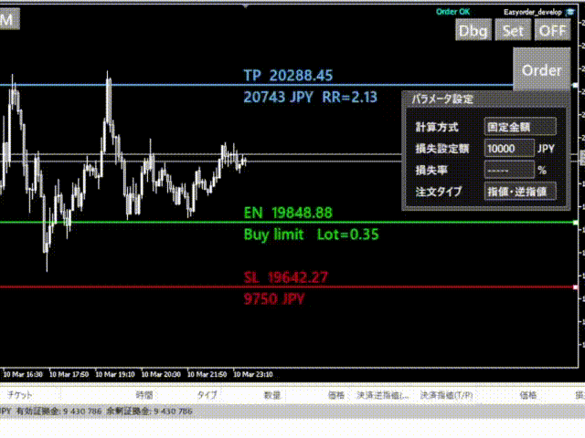 ・成行注文、指値、逆指値注文を自動で適用。