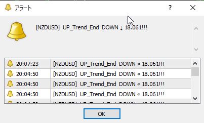 チャート画面にポップアップアラートを表示します。