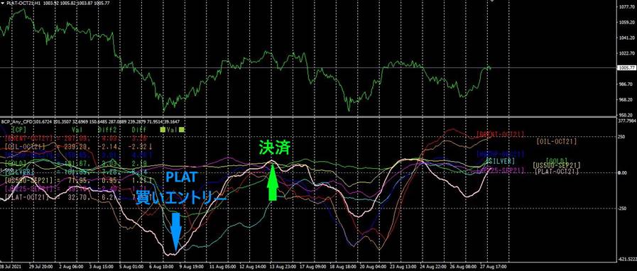 8本のグラフの中で、PLAT-OCT21が一番下になり、さらに底を打って反転してきました。(89)