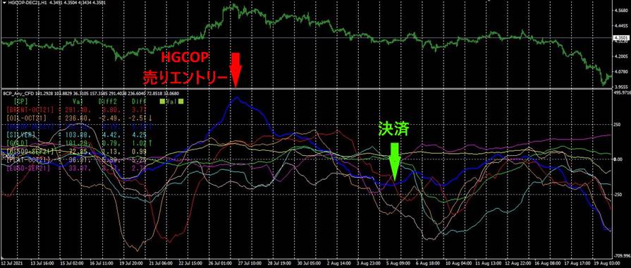 8本のグラフの中で、HGCOP-DECT21が飛び抜けて上に乖離してきました。赤色矢印(7月27)