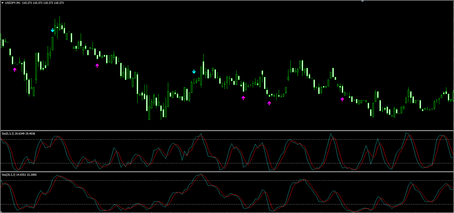 2つのストキャスティクスを使ったシグナルツール。ダマシが回避しやすくなりました。