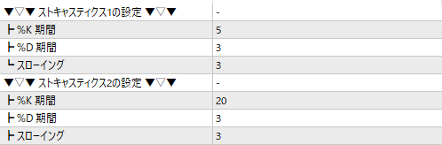 当インジと2つのストキャスティクスの設定値を合わせてお使いください。