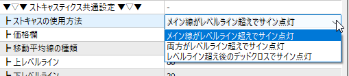 トリガーラインとなる上下レベルラインのほかにも価格や計算に使用する移動平均線の種類なども変更できます。