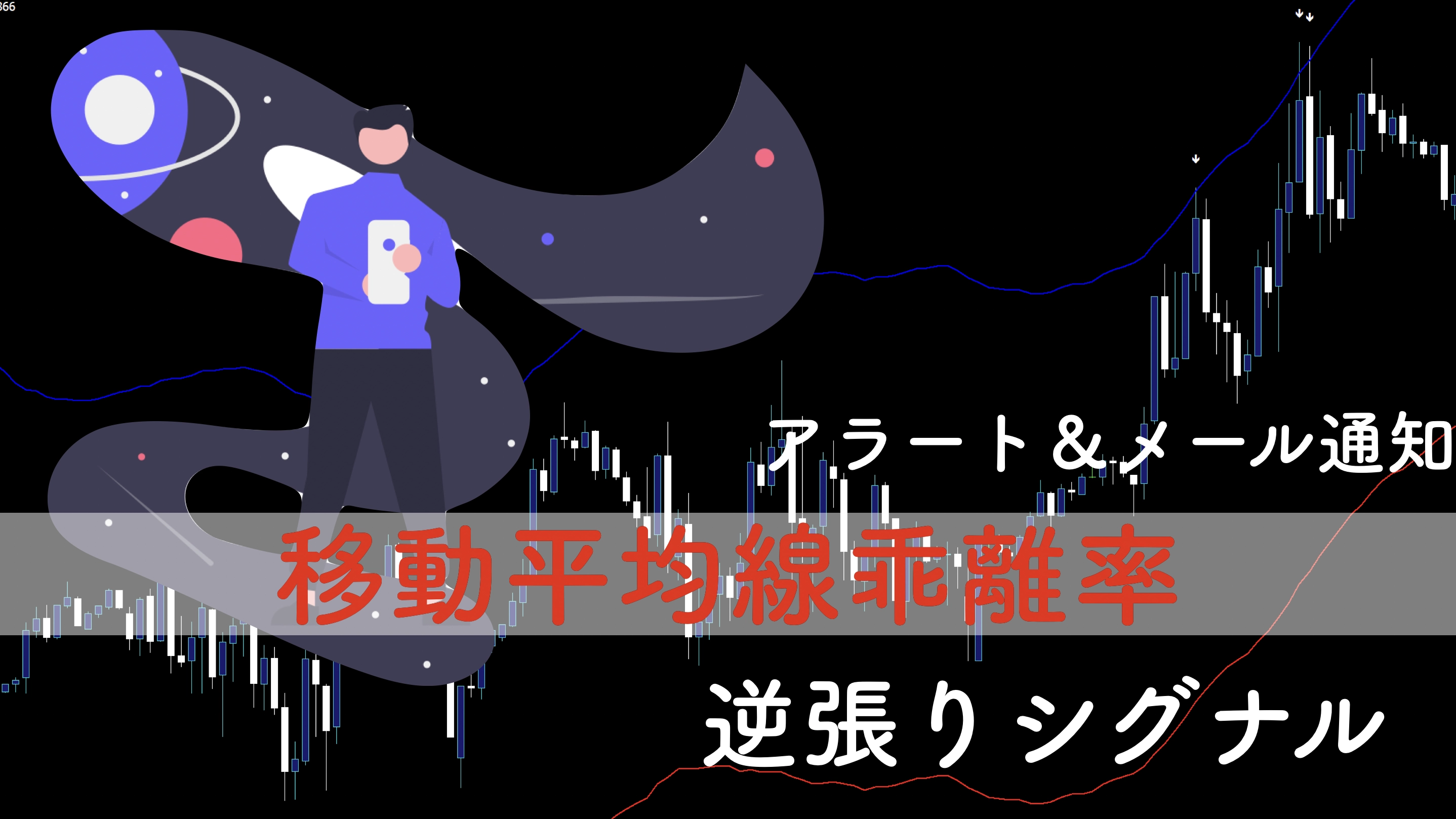 「Saikix-Kairi-Signal.ex4」は指定の移動平均線乖離率を超えたら逆張りシグナル出現、アラート、メール通知を行うインジケーターです。
