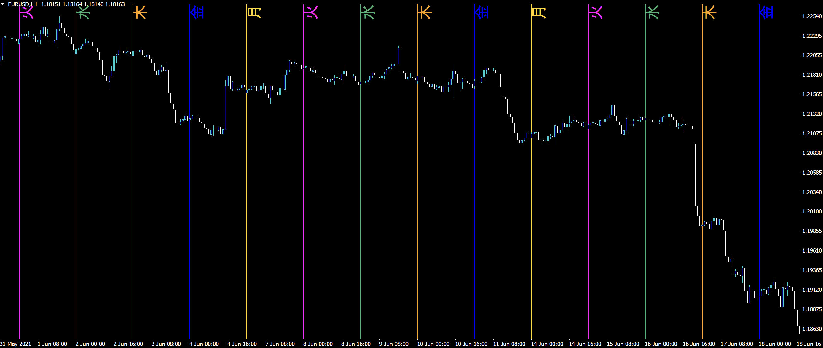 【月曜日〜日曜日】MT4に曜日のラインを自動描画インジケーター Indicators/E-books