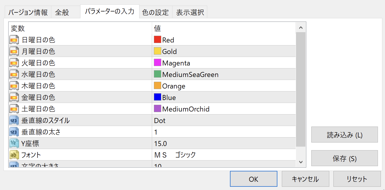 【月曜日〜日曜日】MT4に曜日のラインを自動描画インジケーター
