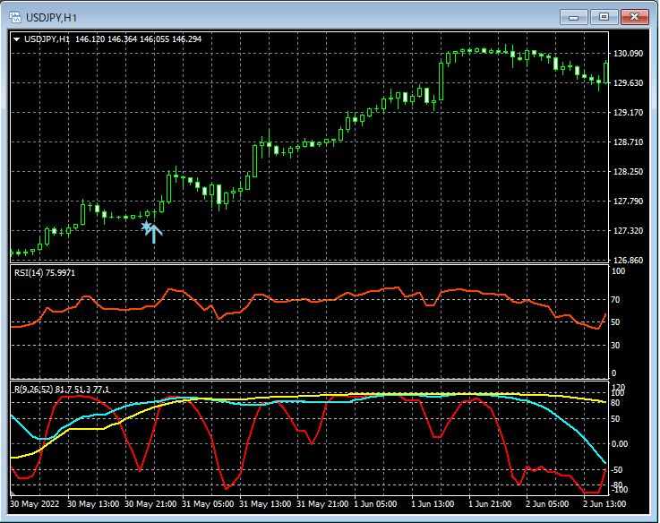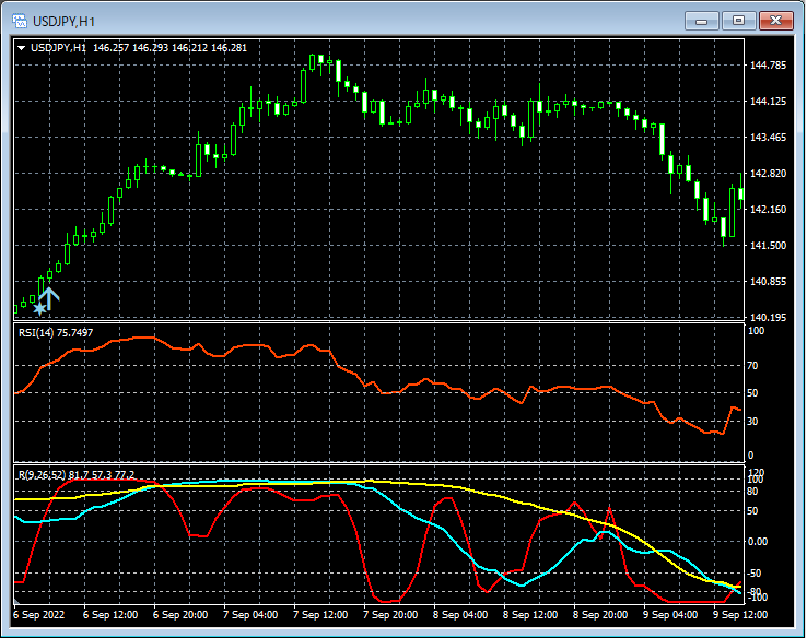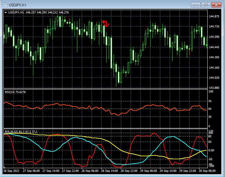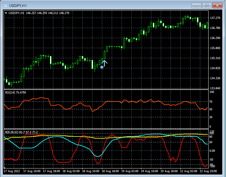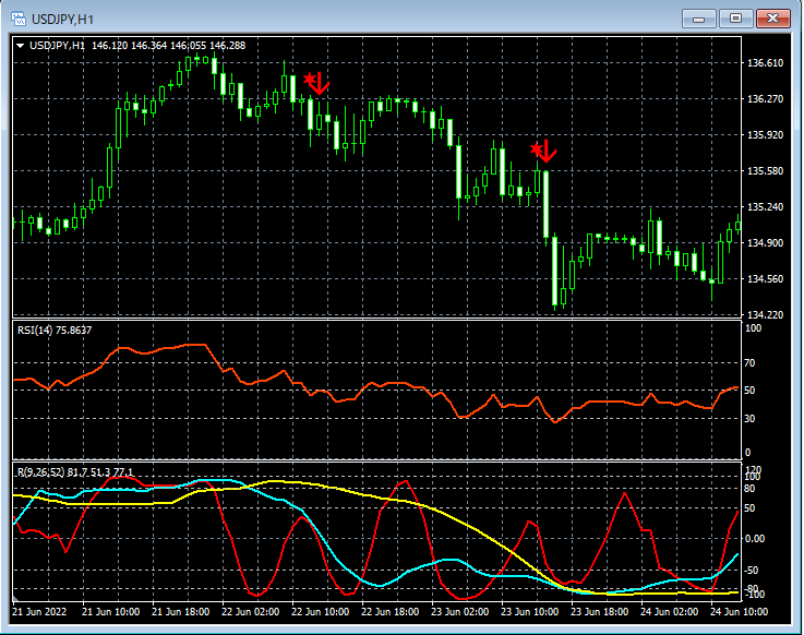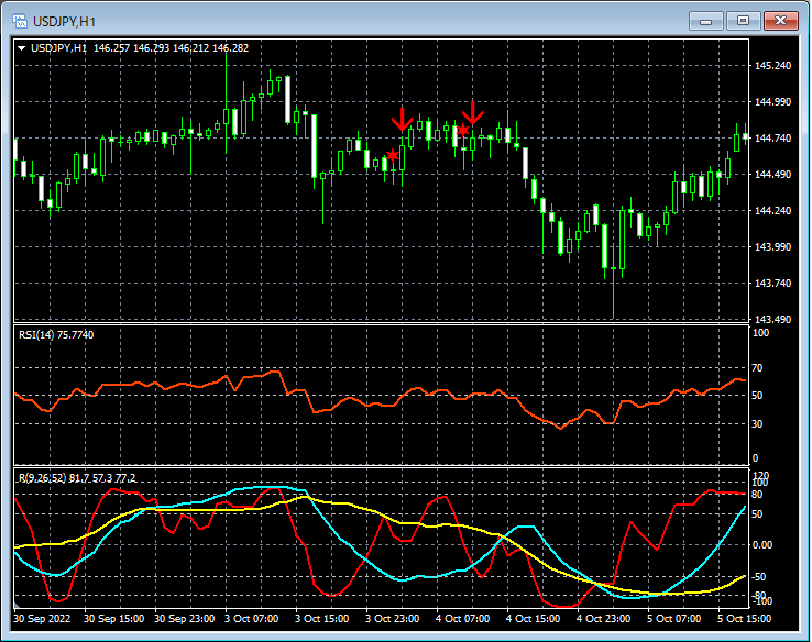 さらに【R3RSI50_Filter】のチャートの例(ドル円1時間足)を準備しました。本ページの下の方に「◆R3RSI50_Filterのサインの例 2022年10月12日追加」という新たな項目を設けて25枚のチャートを掲載しました。