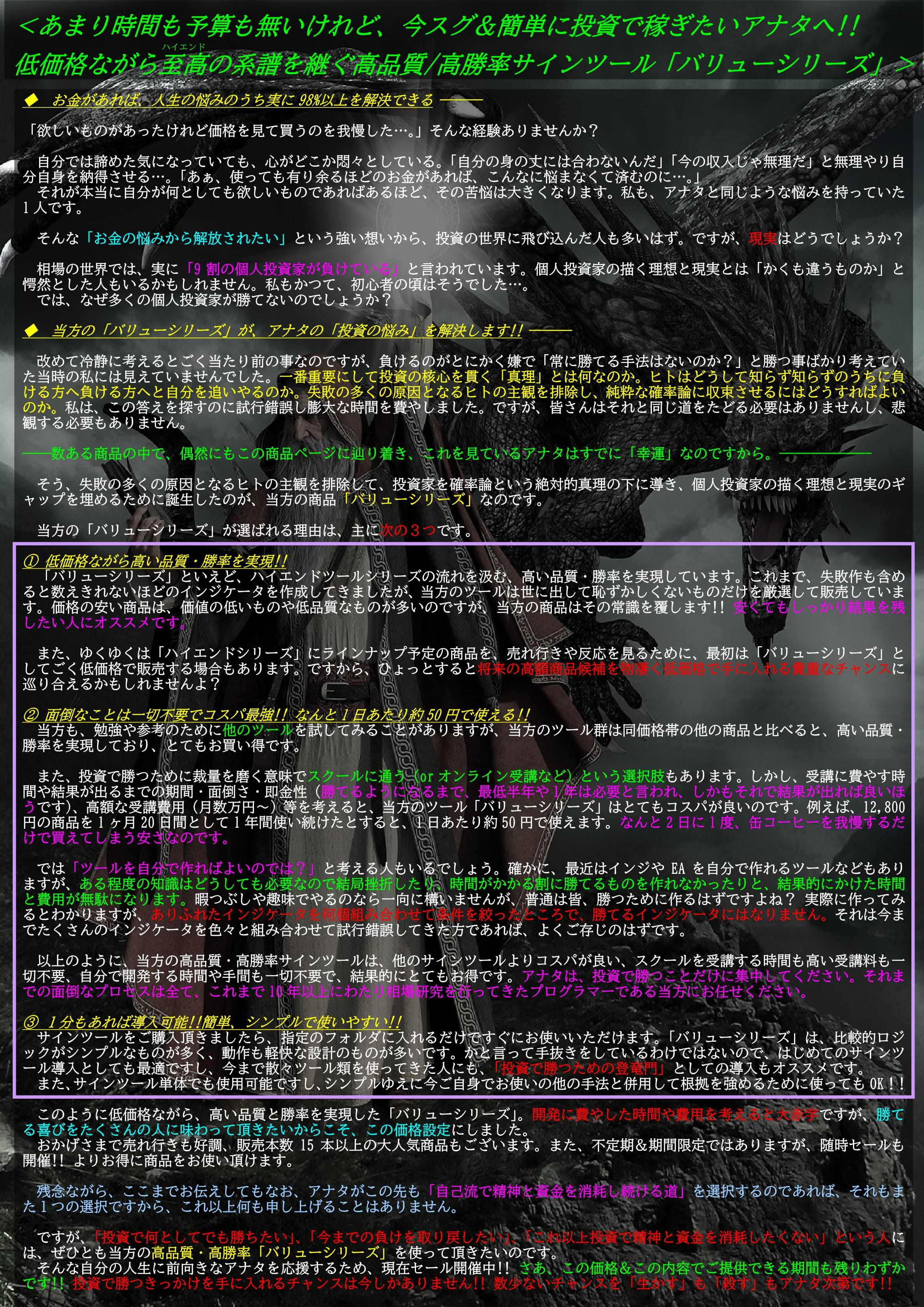 もう聖杯探しは終わりです!!現役プログラマー・トレーダーが自信を持ってご提供するこだわりの逸品!!