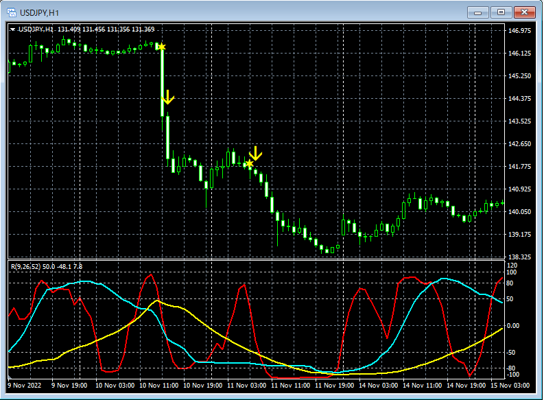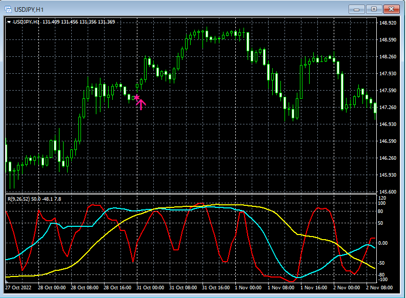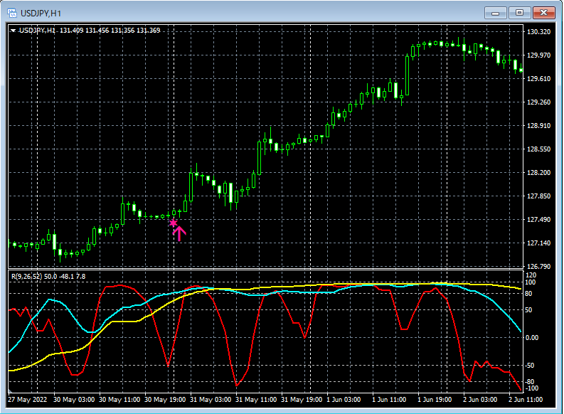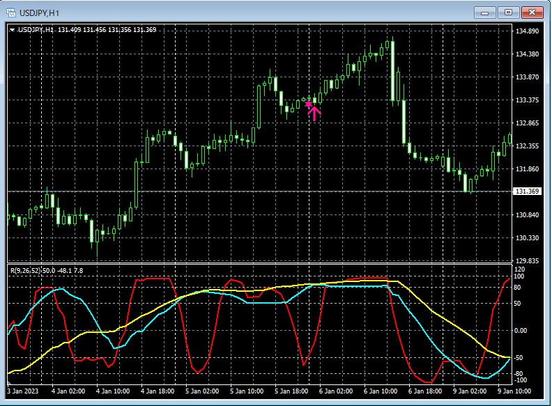 ◆R3HASのチャート例 ドル円1時間足(2023年2月12日追加)