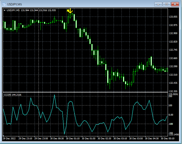 CCIの反応を早くするため、例えば「9」などに変更することも可能。