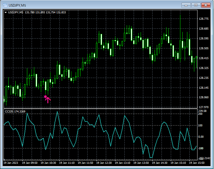 「CCIの買われ過ぎ・売られ過ぎからの反転を狙うのか、設定としては、例えば(-100,100)」あるいは「CCIがゼロラインをクロスするのを待つのか、設定としては(0,0)」といった視点から設定を考えることもできるかもしれません。