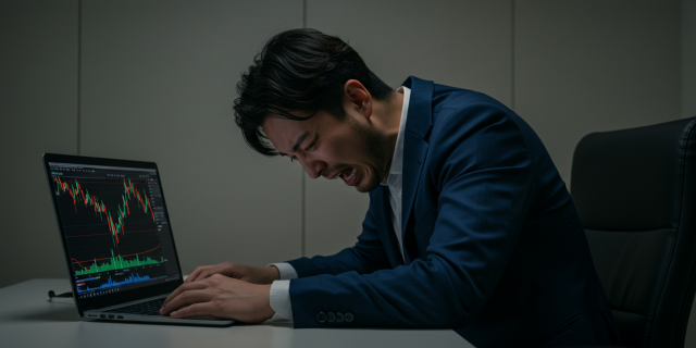 「含み損」という名の冷たい粘液質の怪物が、あなたの腹の中でムクムクと、 グロテスクに膨れ上がるあのおぞましい感覚。 ただ祈ることしかできない、あの骨の髄までビリビリ痺れるような無力感。