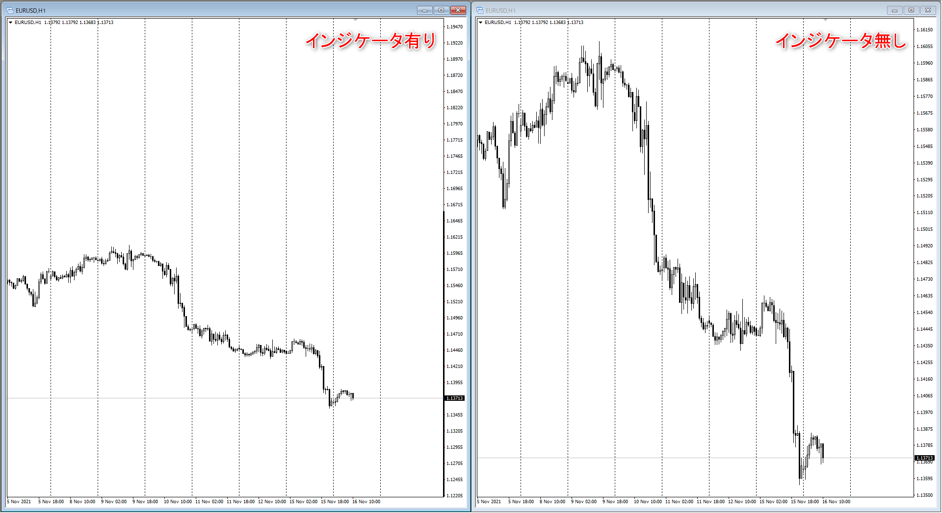 たとえば、ドル円の過去20日間の最高値が115.00、最安値が112.00だったとしたら、チャート画面の上端が115.00に、下端が112.00に自動で調整されます。 ▼圧縮比率(0~100%) 通常は0で問題ありませんが、さらに上下に圧縮して表示したい場合、お好みの数値を入れてください。