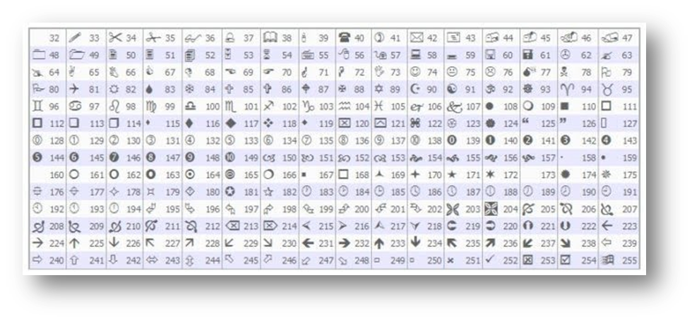 ※記号コード174と上矢印および下矢印は同時に表示されます。