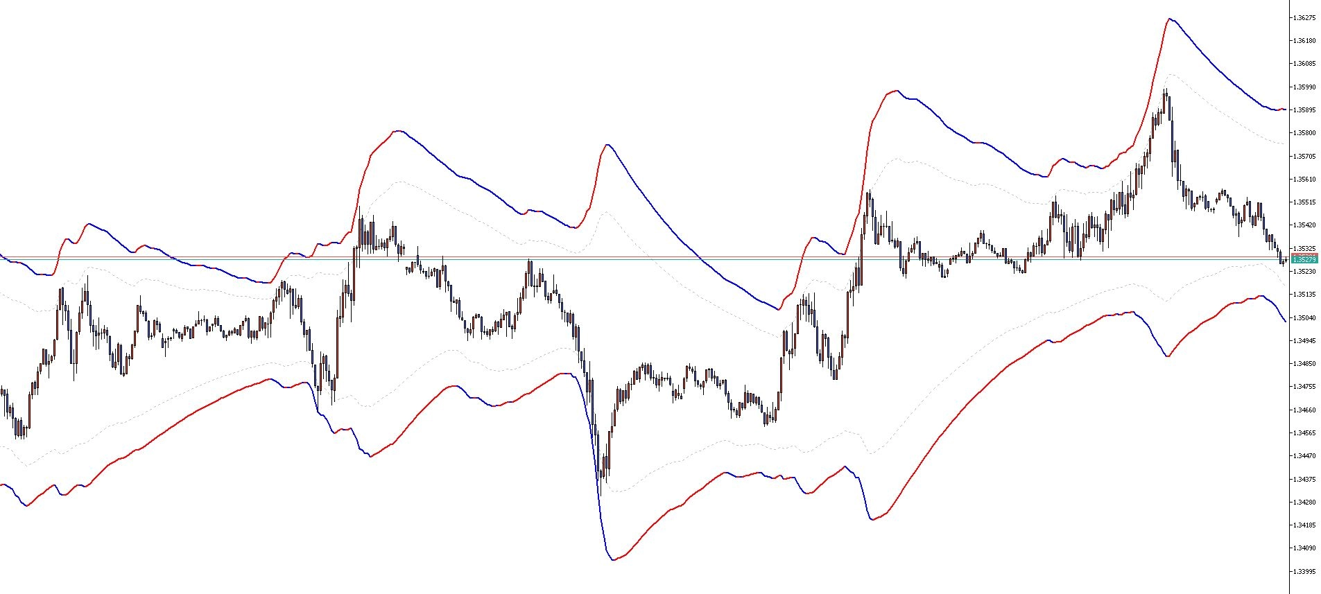 ボリンジャーバンドの計算法を変更する事が出来るカスタムバンドです。