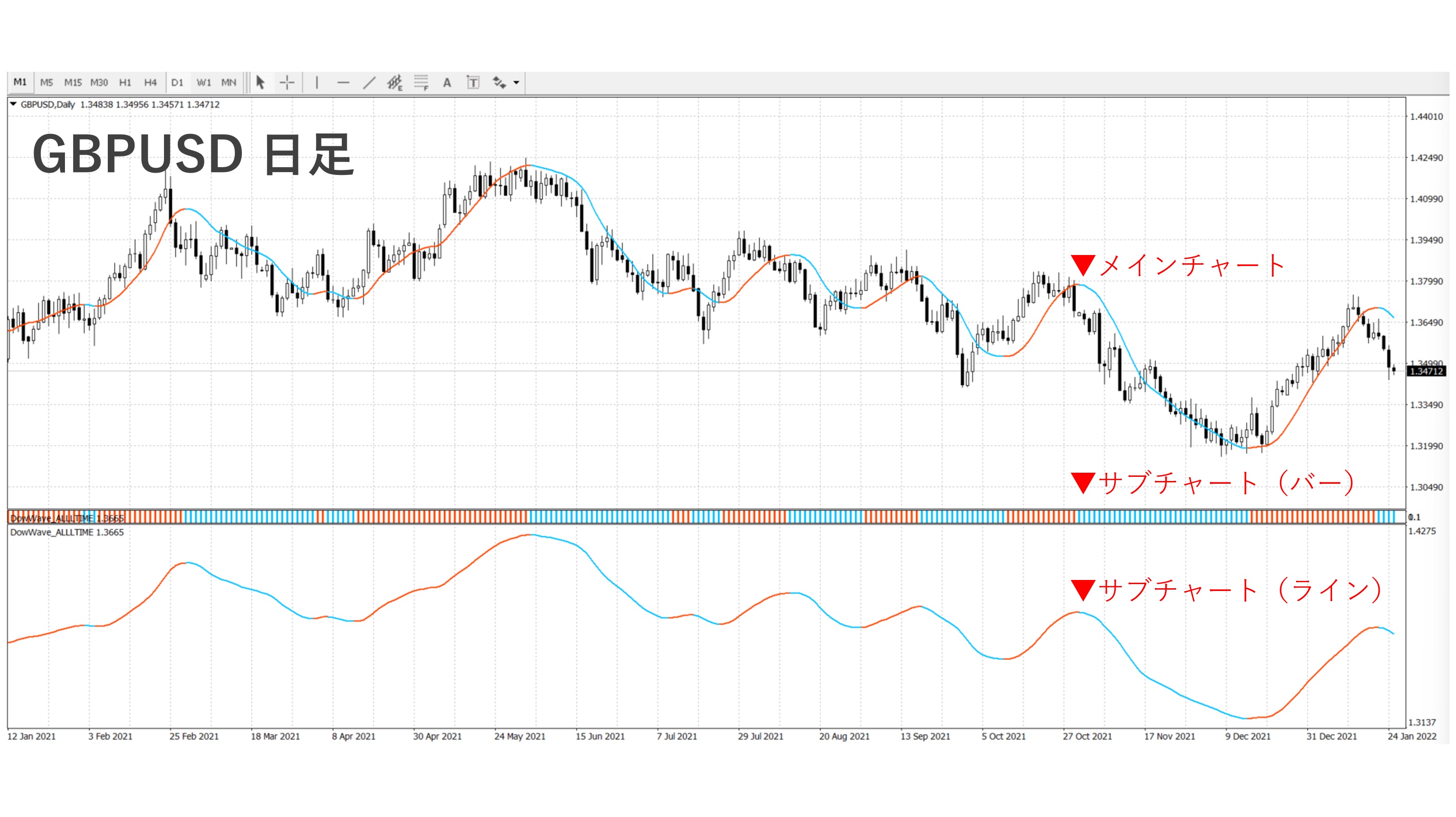 Dow_wave はメイン・サブどちらのチャートにも対応しており 判断も非常にシンプルです。