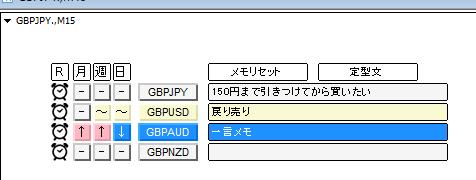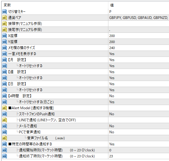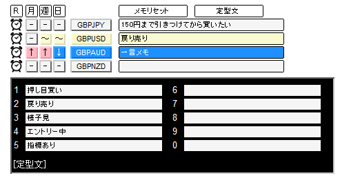 通貨ペアを変更する機能に加え、目線固定ボタン、アラート、一言メモ機能を兼ね備えたインジケータです