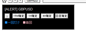 ・15分、1H、4H、日足などが確定するたびにスマホ等に通知することができます(1回のみ、毎回など選択可能)