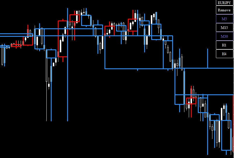 ボタンを押すことで 上位足が出現複数表示も可能な仕様
