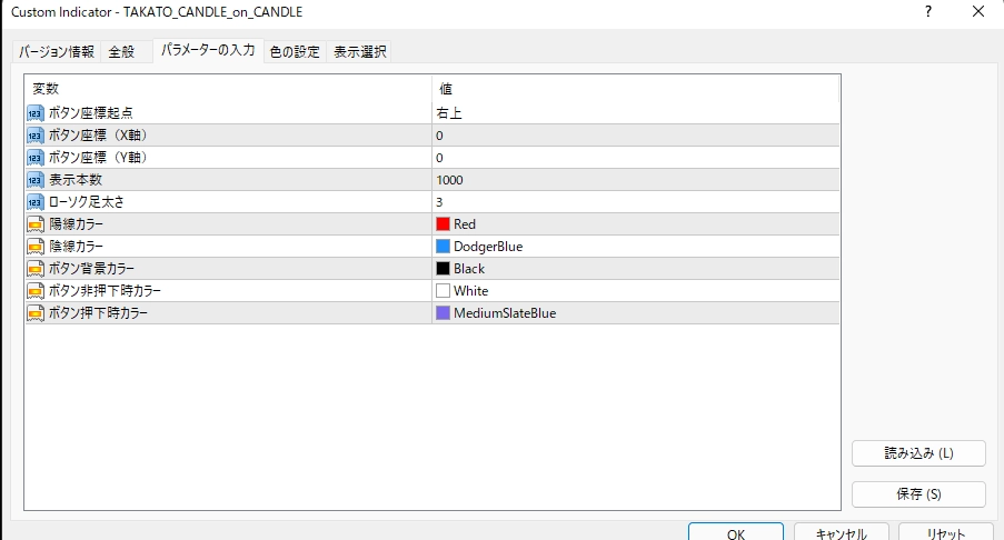 〇ローソク足の色や太さが変更可能