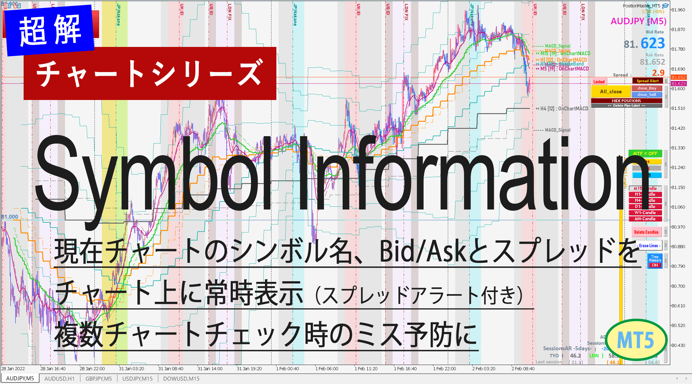 そんな時、こちらの[超解] Symbol Information を導入していると瞬時に今、自分が何のチャートを見ているのか確認することができ思わぬミストレードの防止にもなります。