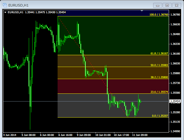 フィボナッチレベルラインとローソク足本体のクロスでアラートやメール通知!見やすく背景色を塗り分け!